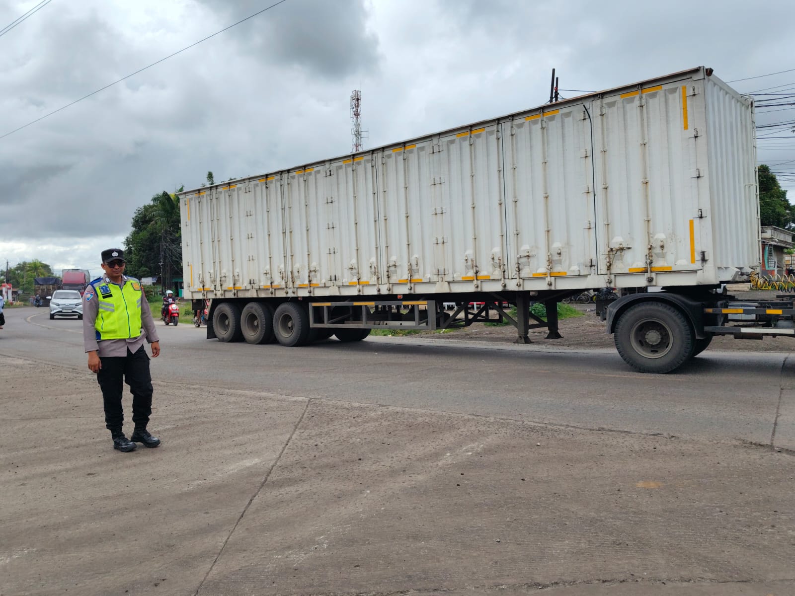 Kapolres Cilegon AKBP Martua Raja Taripar Laut Silitonga Melalui Kapolsek Kskp Banten Polres Cilegon AKP Fredo Leonard menyampaikan Laksanakan Pengamanan Sesuai plotinganya lakukan Pengaturan Supaya Arus Lalu Lintas tetap Berjalan lancar dan Pastikan tidak ada hambatan.