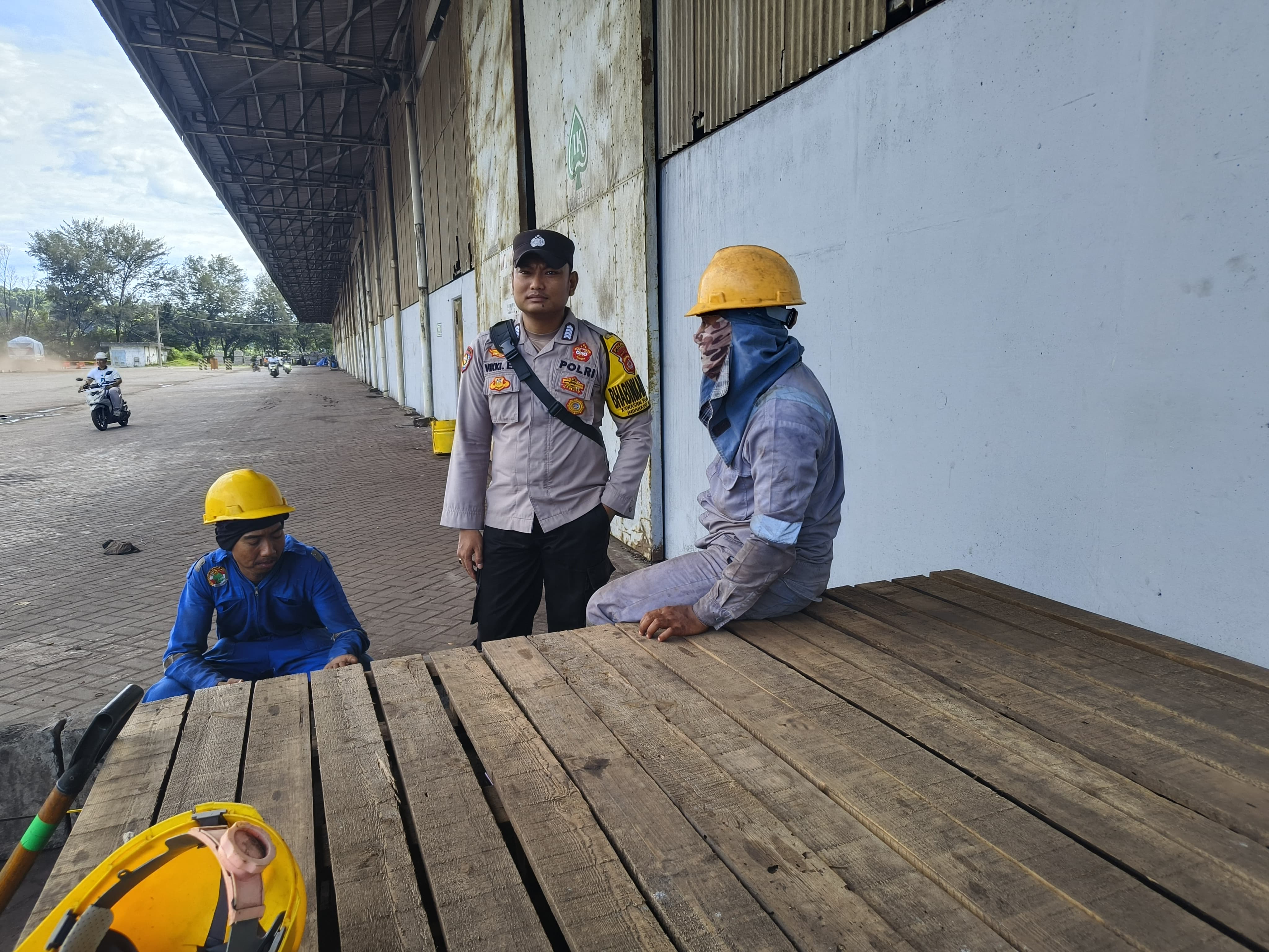 Jalin Silaturahmi, Bhabinkamtibmas Pelabuhan Polsek Kawasan Pelabuhan Banten berbincang ke Buruh Pelabuhan