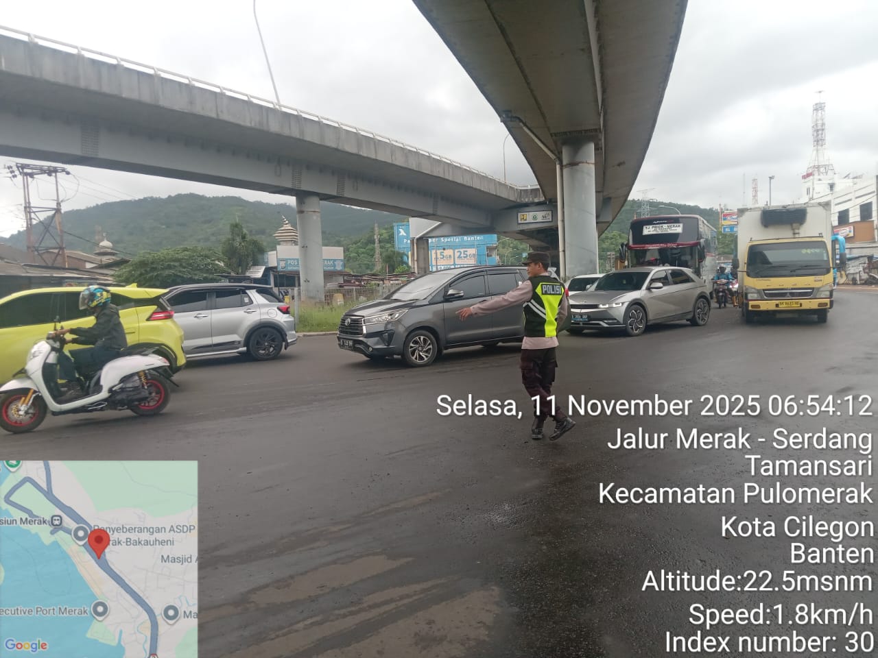 Polsek KSKP Merak Pastikan Kelancaran Arus Kendaraan Menuju Kapal Ferry di Pelabuhan Merak