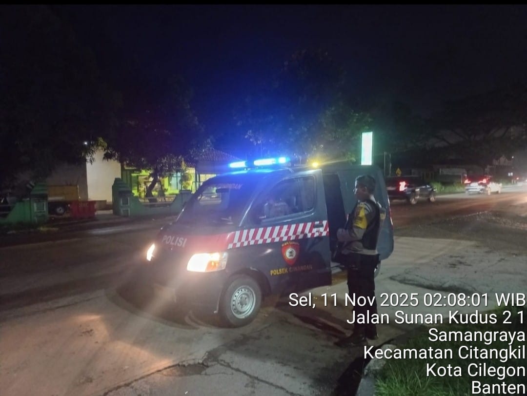 Cilegon - Polres Cilegon melalui Polsek Ciwandan melaksanakan kegiatan Blue Light Patrol. Kegiatan ini bertujuan untuk mengantisipasi gangguan kamtibmas, premanisme, C3 (curat, curas, dan curanmor), balap liar, gang motor, dan perkelahian remaja didaerah hukum Polsek Ciwandan, Selasa (11/11/2025).