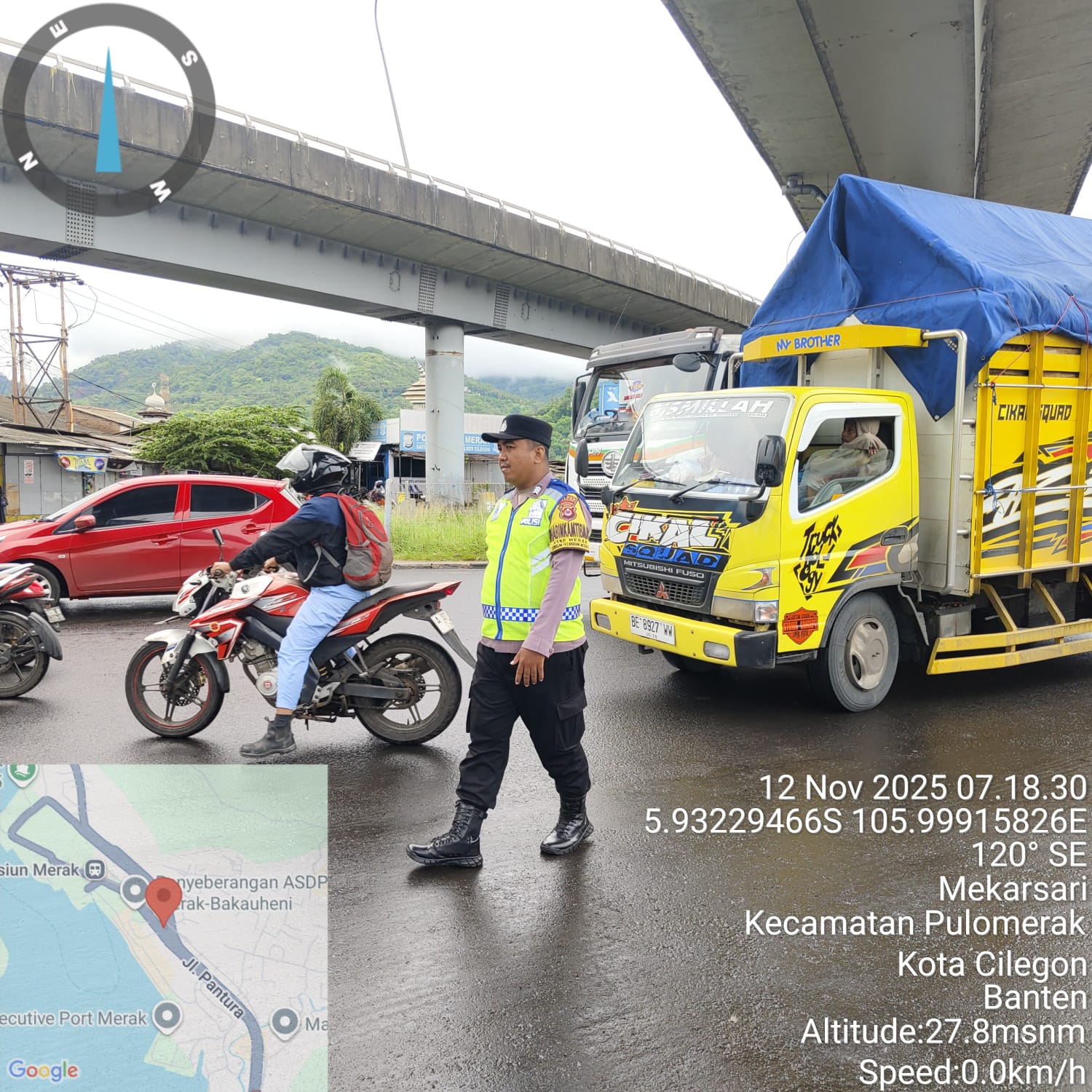 Kapolres Cilegon Polda Banten AKBP Martua Raja Taripar Laut Silitonga melalui Kapolsek Kskp Merak AKP Gusti Almasri P menyampaikan bahwa kegiatan pengaturan antrian ini adalah dalam rangka memberikan pelayanan kepada masyrakat yang akan menyebrang ke Bakauheni atau Sumatra melalui jalur laut dengan menaiki kapal Ferry.
