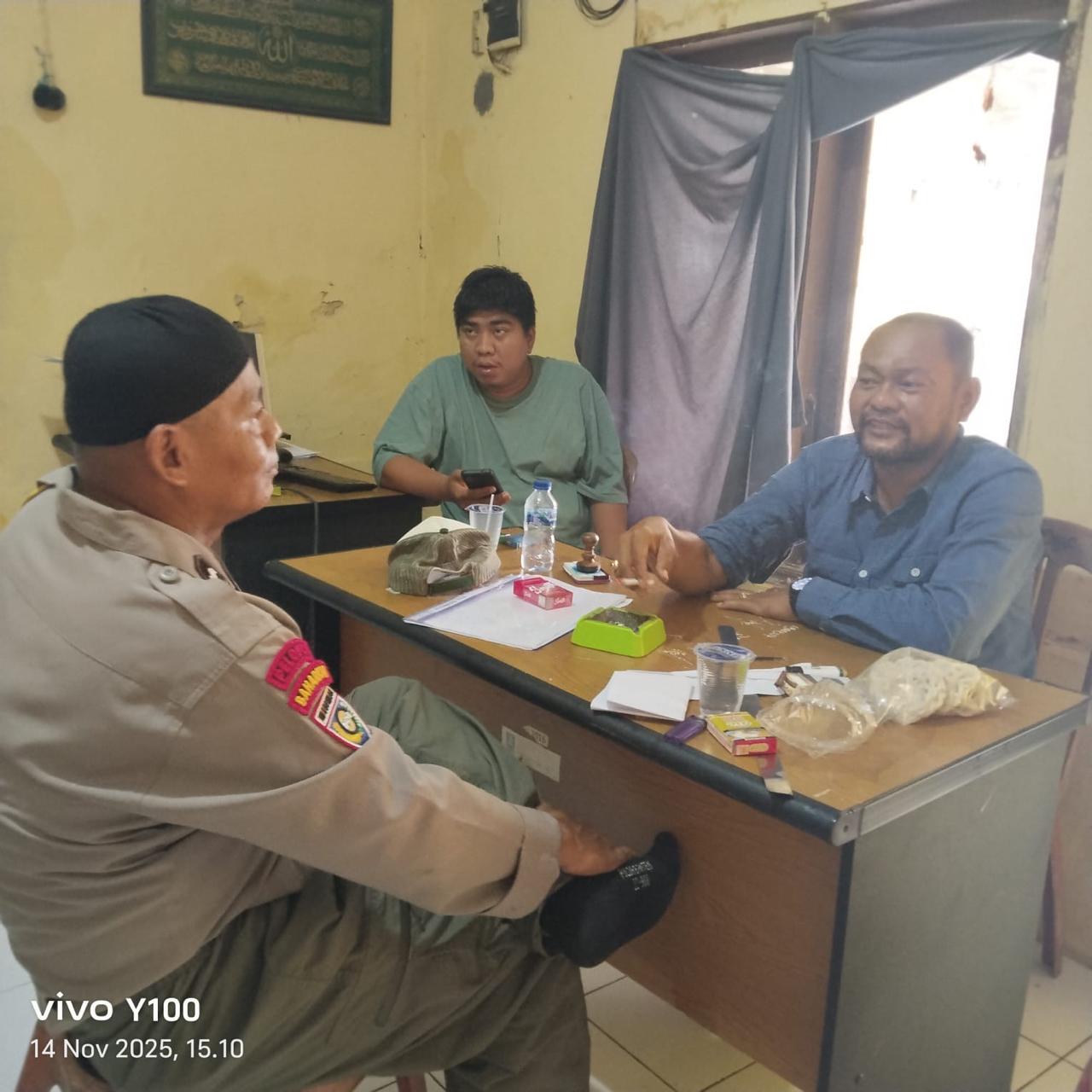 *CILEGON* dalam Rangka Mengantisipasi Gktm di wilayah Personil Bhabinkamtibmas Cinangka melakukan patroli Dialogis dengan Kepala Desa dan warga dan Menanyakan situasi Kamtibmas di wilayah dalam Rangka Menjaga Harkamtibmas di Desa Binaannya Kecamatan Cinangka Kab. Serang. Jumat.(14/11/2025).