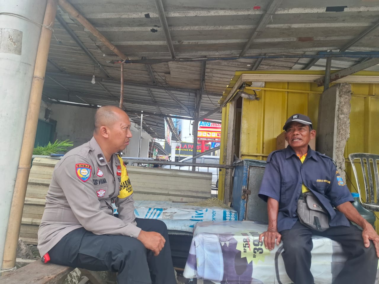 Bhabinkamtibmas Polsek Anyar Sedang Melaksanakan Giat Dialogis Kepada Petugas Parkir