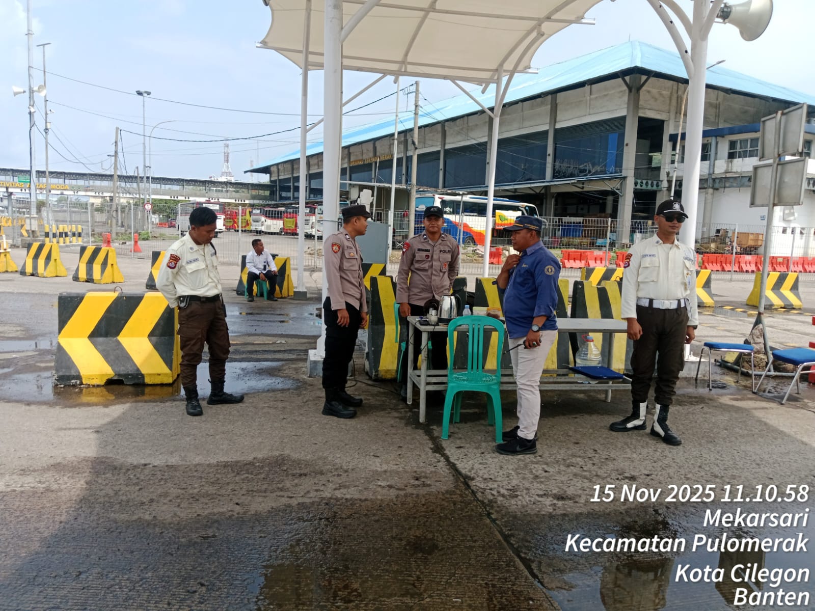 Cilegon - Personel Polsek Kskp Merak Polres Cilegon Polda Banten melaksanakan sambang dan patroli kawasan pelabuhan merak dalam rangka menjaga Harkamtibmas di Kawasan Pelabuhan Merak, Sabtu (15/11/2025).