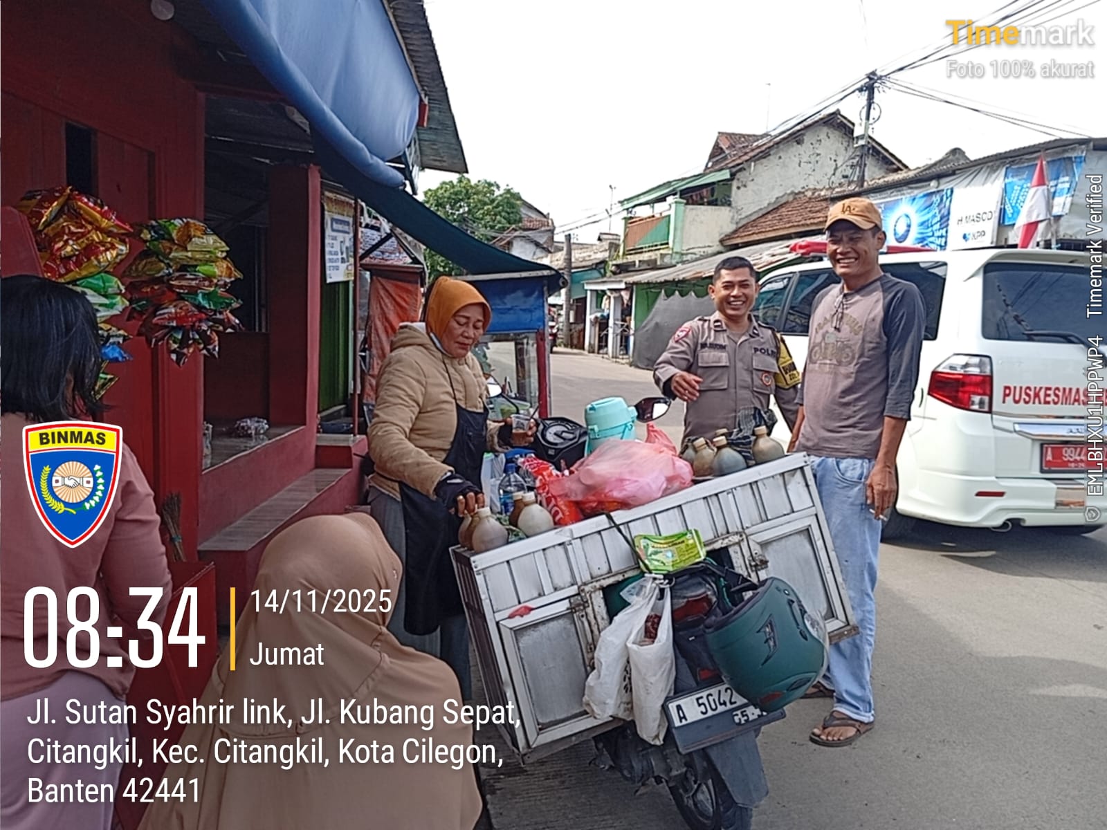 Cilegon – Bhabinkamtibmas Polsek Ciwandan Selalu Hadir Di Setiap Kegiatan warga binaanya merupakan salah satu tugas rutin Bhabinkamtibmas, yakni dengan melaksanakan kunjungan kepada masyarakat binaannya untuk menjalin silaturahmi yang lebih erat dan menyampaikan pesan-pesan kamtibmas serta mencari informasi yang berkembang di masyarakat agar tercipta situasi kamtibmas yang aman dan kondusif, Sabtu (15/11/2025).