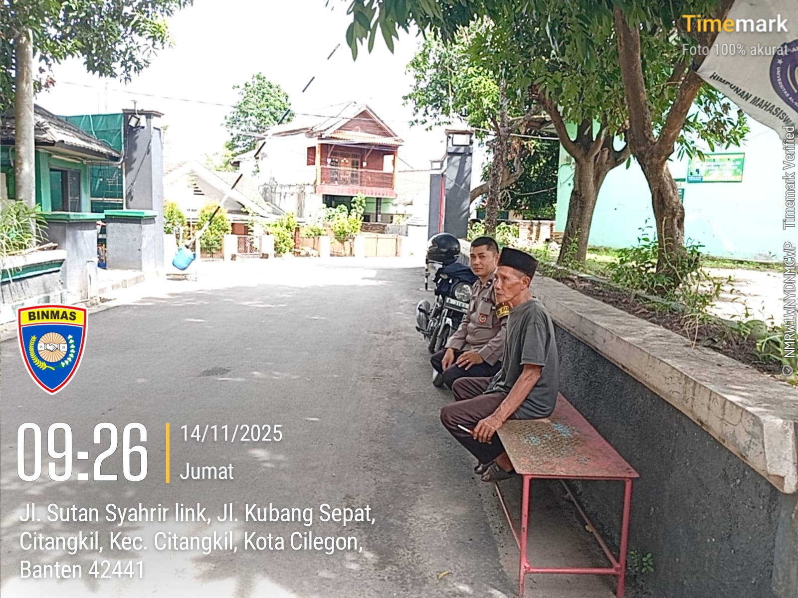 Cilegon – Bhabinkamtibmas Polsek Ciwandan Selalu Hadir Di Setiap Kegiatan warga binaanya merupakan salah satu tugas rutin Bhabinkamtibmas, yakni dengan melaksanakan kunjungan kepada masyarakat binaannya untuk menjalin silaturahmi yang lebih erat dan menyampaikan pesan-pesan kamtibmas serta mencari informasi yang berkembang di masyarakat agar tercipta situasi kamtibmas yang aman dan kondusif, Sabtu (15/11/2025).