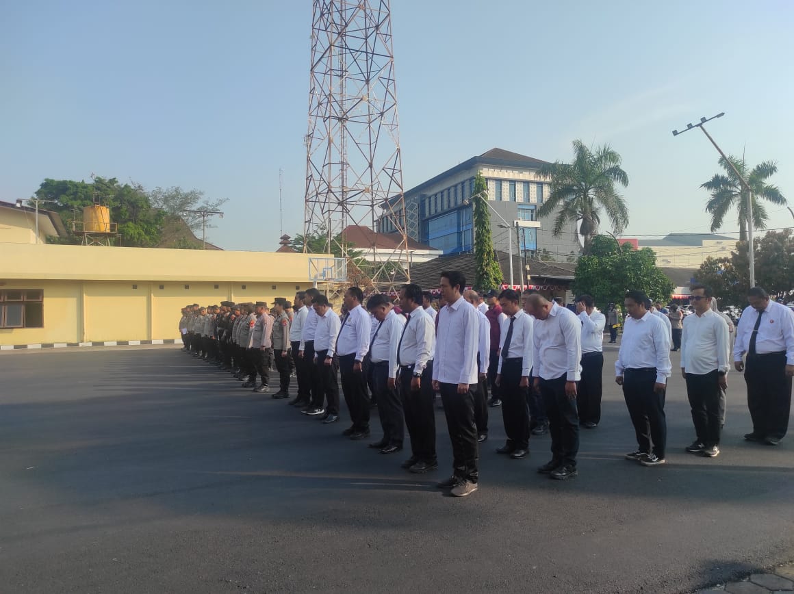 Polres Cilegon Polda Banten melaksanakan apel pagi merupakan bagian dari cara penyampaian informasi atau rencana kegiatan serta analisa dan evaluasi dalam pelaksanaan tugas di lapangan di Lapangan mako polres Cilegon, Jumat(04/04/2024)
