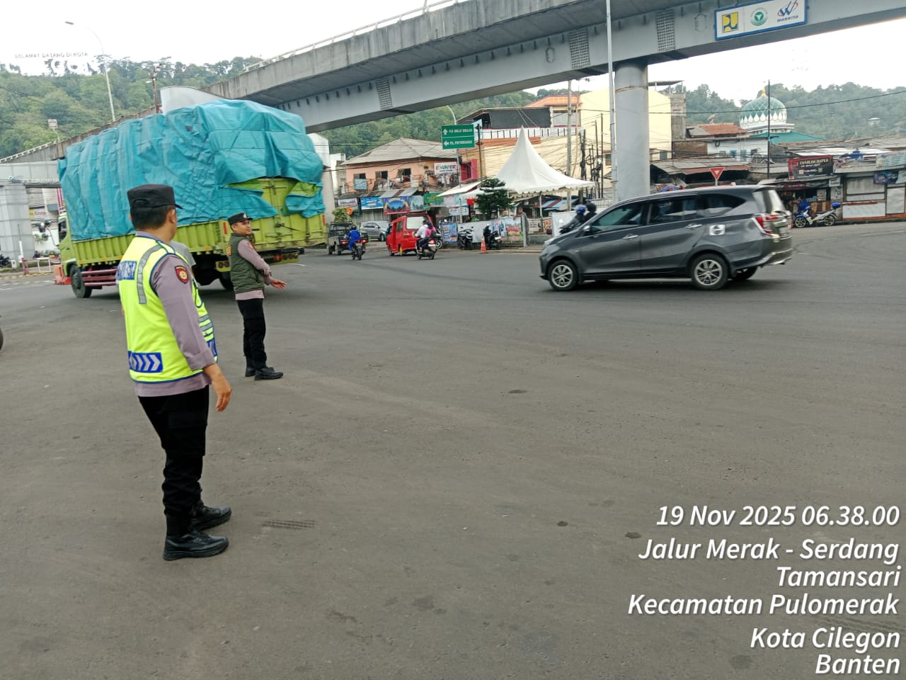 Cilegon - Dalam rangka peningkatan pelayanan prima kepada masyarakat, Kskp Merak Polres Cilegon Polda Banten melaksanakan pengaturan antrian R4 yang akan masuk ke Kapal Ferry di Pelabuhan Merak, Rabu (19/11/2025).