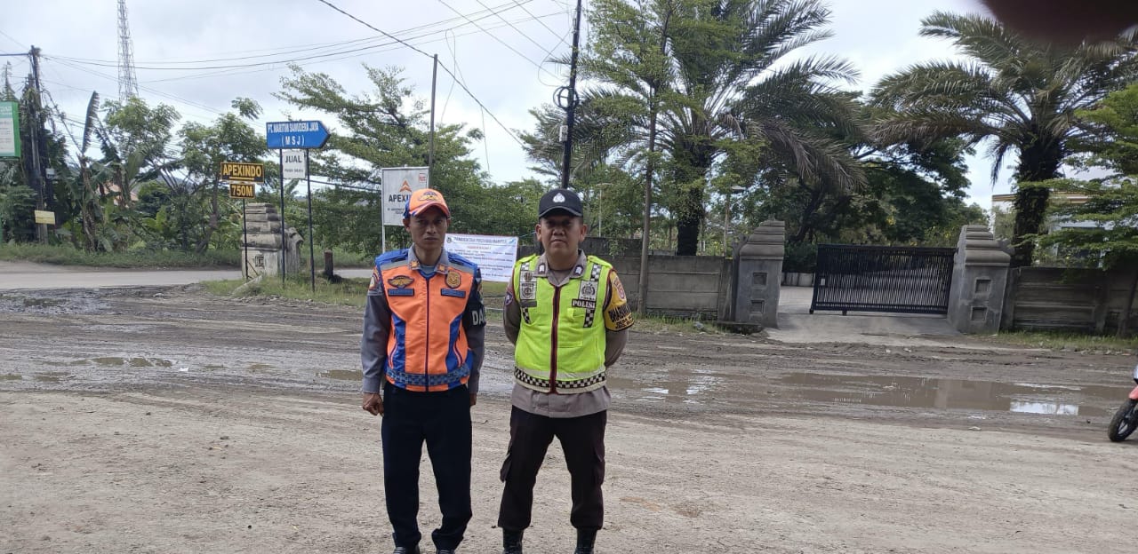 Ciptakan Situasi Lalu Lintas Aman, Bhabinkamtibmas dan Dishub Laksanakan Gatur Lalin Sore Hari Di Jalan Raya PT MSJ Bojonegara
