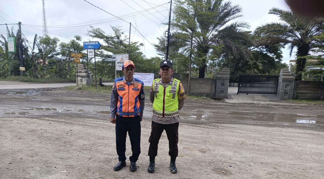 Strong Poin Sore Hari, Bhabinkamtibmas dan Dishub Pengaturan lalu lintas Di Jalan Raya PT MSJ Bojonegara