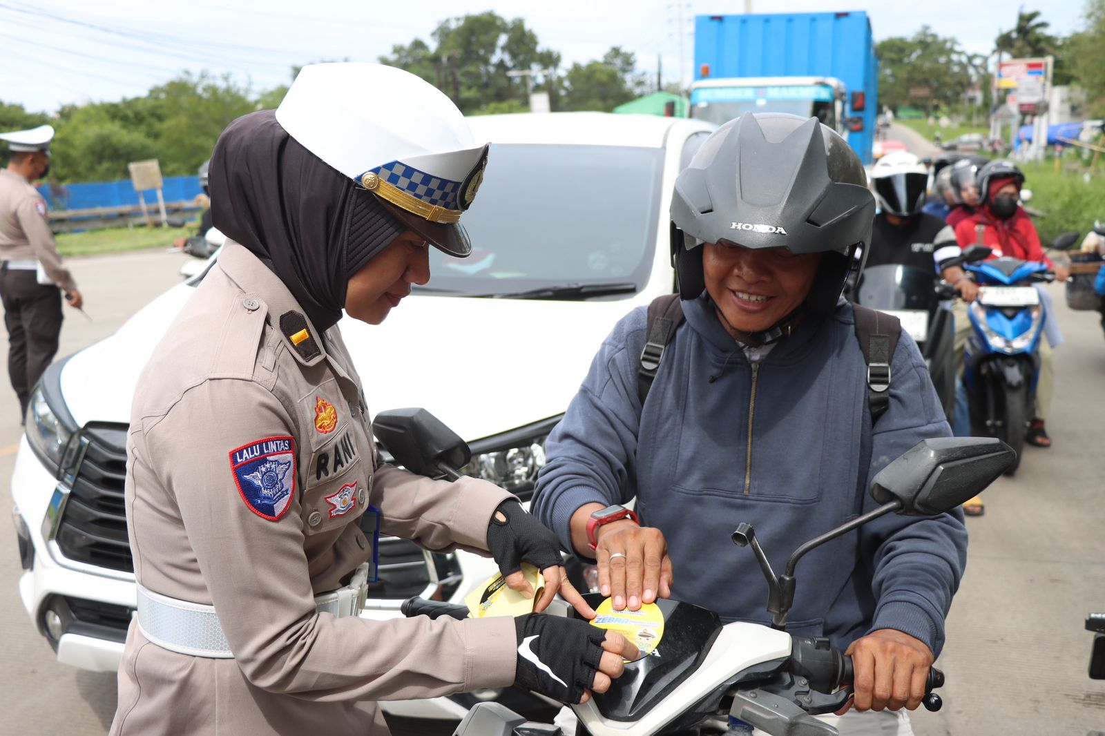 Selain itu, kegiatan pemasangan spanduk, pembagian leaflet, dan penempelan stiker Operasi Zebra Maung 2025 turut dilakukan untuk memperluas pemahaman masyarakat akan pentingnya keselamatan berlalu lintas, khususnya menjelang momen Natal dan Tahun Baru.