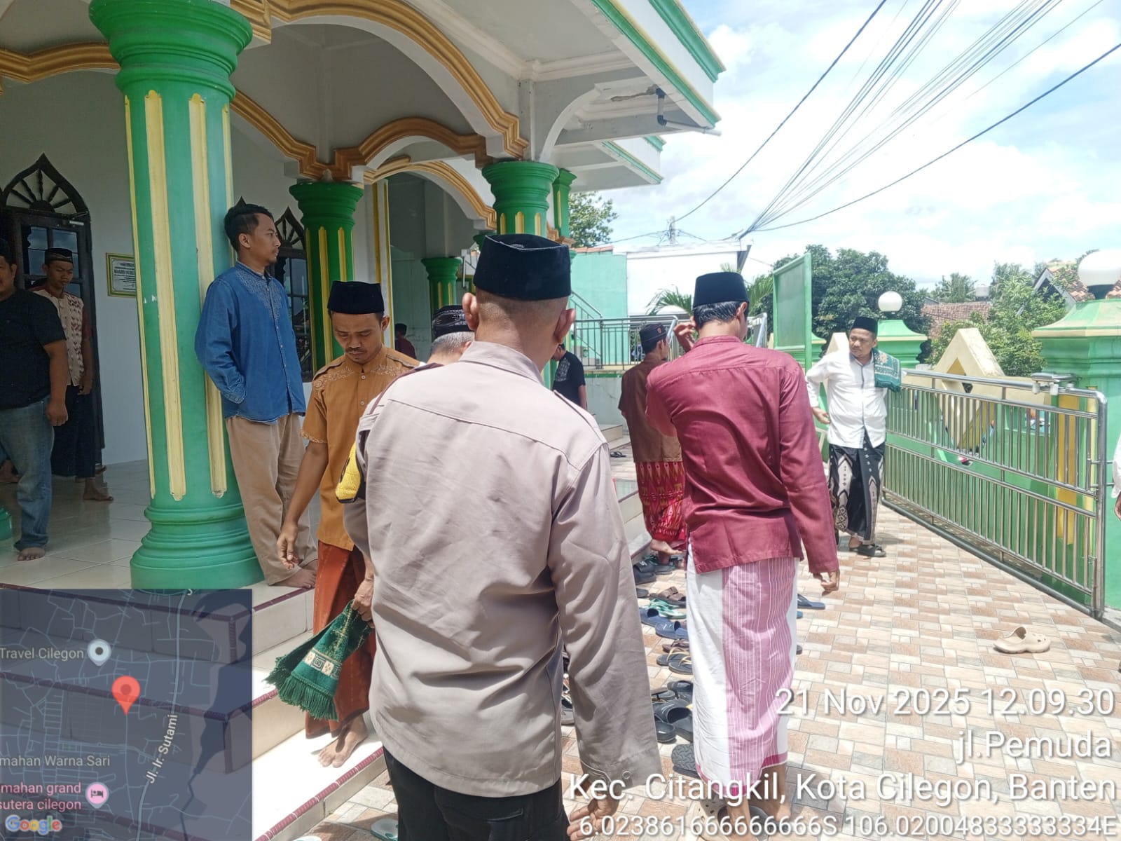 Cilegon - Bhabinkamtibmas Polsek Ciwandan Polres Cilegon Polda Banten Selesai melaksanakan Sholat secara berjama’ah dan Sampaikan Himbauan-himbauan Kamtibmas Kepada Masyarakat Jama'ah Yang ada Dimasjid, Jum'at (21/11/2025).