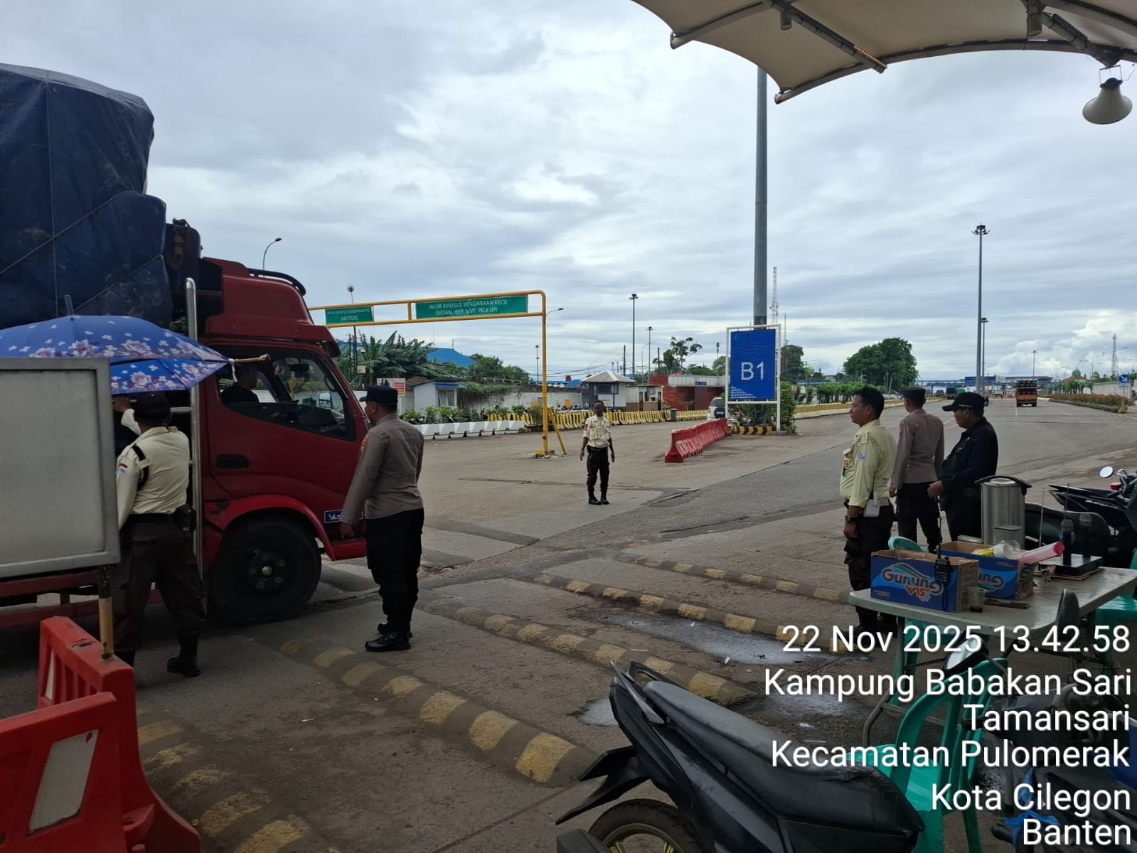 Cilegon - Personel Polsek Kskp Merak Polres Cilegon Polda Banten melaksanakan sambang dan patroli kawasan pelabuhan merak dalam rangka menjaga Harkamtibmas di Kawasan Pelabuhan Merak, Sabtu (22/11/2025).