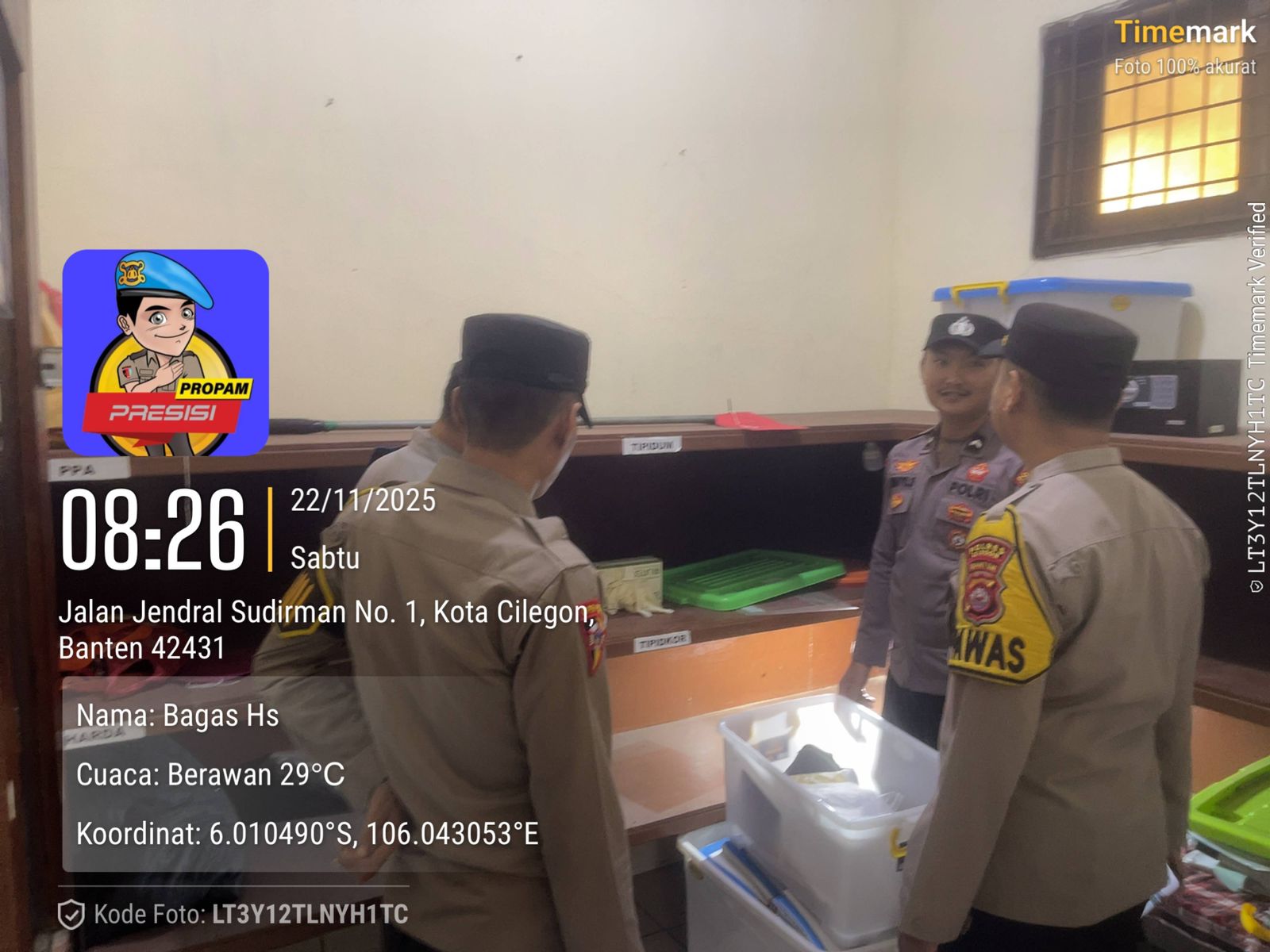 Cilegon,Personel piket Satreskrim Polres Cilegon Polda Banten beserta piket fungsi lainya melakukan pengecekan jumlah narapidana dan ruang di setiap kamar rutan di polres cilegon. Kegiatan ini bertujuan agar terus memonitor keadaan para narapidana di rutan polres cilegon dan menghindari hal-hal yang tidak diinginkan serta mengecek kekuatan setiap ruangan. sabtu (22/11/2025).