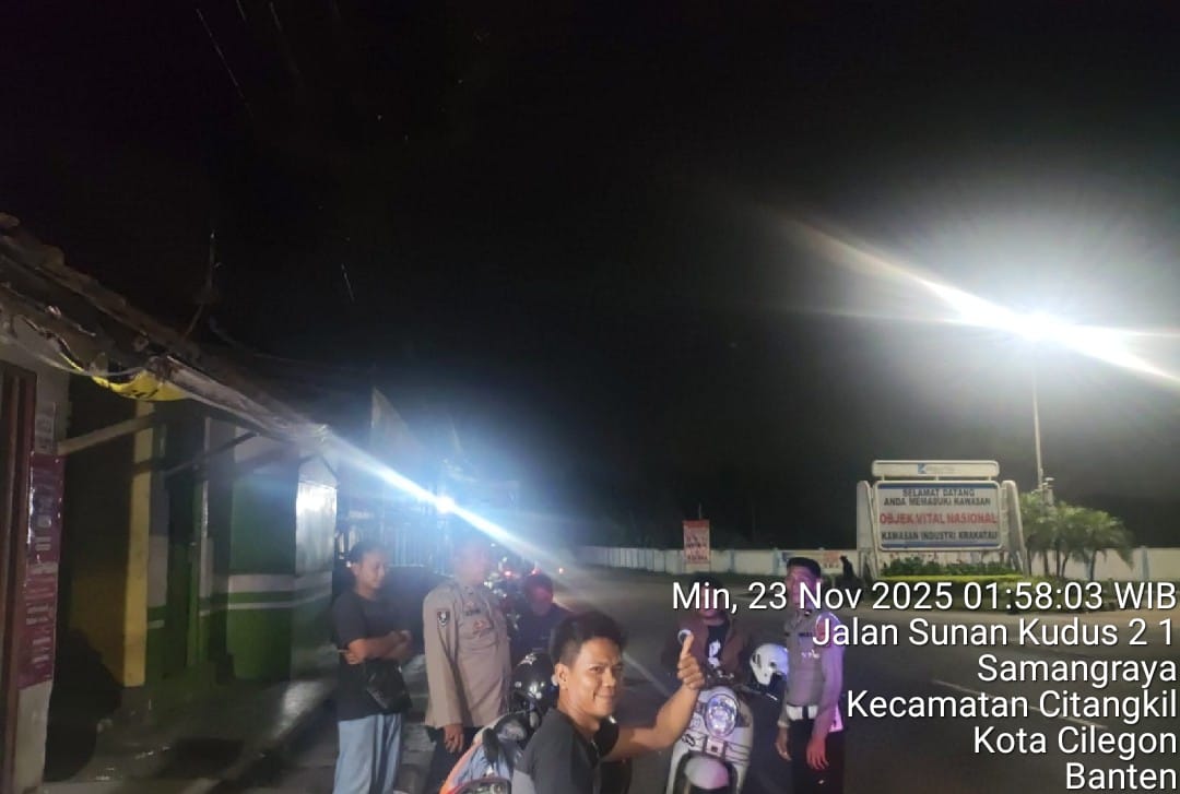 Cilegon - Personil Polsek Ciwandan Polres Cilegon Polda Banten Selalu Melaksanaan Kegiatan KRYD (Kegiatan Rutin Yang Ditingkatkan) Patroli Rutin malam hari di daerah hukum Polsek Ciwandan Guna Persempit Ruang Pelaku Tindak Kejahatan, Sabtu (22/11/2025).