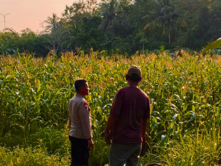 Giat Bhabinkamtibmas Rawaarum bersama poktan Rawa saat merawat tanaman jagung