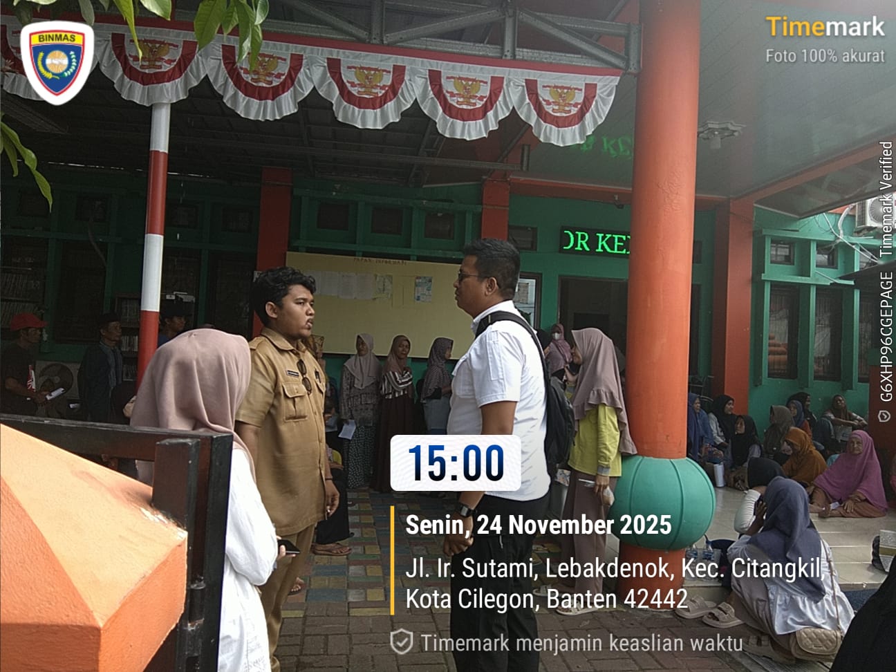 Cilegon - Bhabinkamtibmas Kelurahan Lebak Denok, AIPTU YUDI SETIAWAN, melaksanakan pengamanan dan monitoring bantuan langsung tunai dari Kementerian Sosial RI di Kantor Kelurahan Lebak Denok, Kecamatan Citangkil, Kota Cilegon, Senin (24/11/2025).