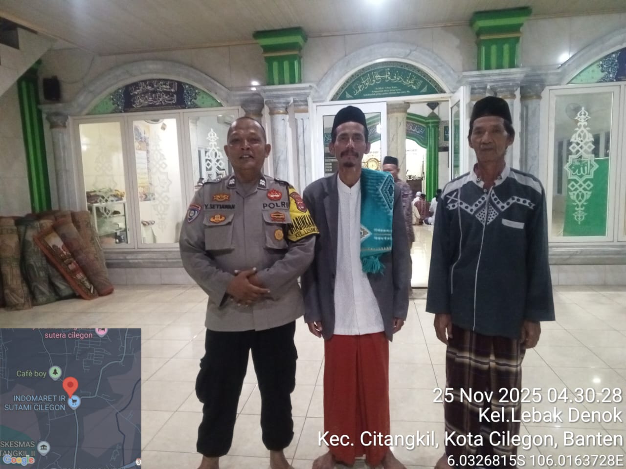Cilegon – Bhabinkamtibmas Polsek Ciwandan Polres Cilegon Polda Banten menggelar kegiatan Pembinaan Rohani dengan Sholat subuh keliling di Masjid Yang ada Di Daerah hukum Polsek Ciwandan Polres Cilegon Polda Banten, Senin (24/11/2025).