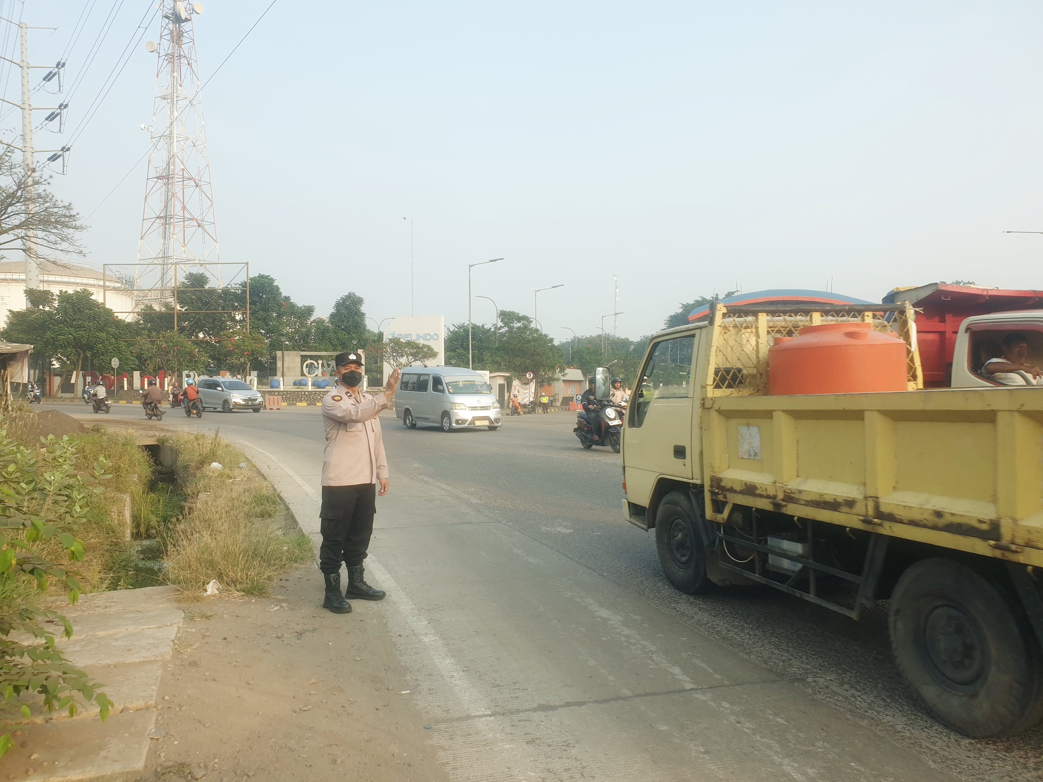 Kapolres Cilegon AKBP Martua Raja Taripar Laut Silitonga Melalui Kapolsek Kskp Banten Polres Cilegon AKP Fredo Leonard menyampaikan Laksanakan Pengamanan Sesuai plotinganya lakukan Pengaturan Supaya Arus Lalu Lintas tetap Berjalan lancar dan Pastikan tidak ada hambatan.