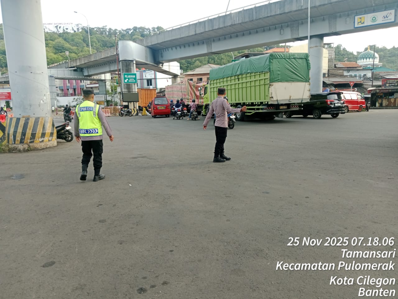 Cilegon - Dalam rangka peningkatan pelayanan prima kepada masyarakat, Kskp Merak Polres Cilegon Polda Banten melaksanakan pengaturan antrian R4 yang akan masuk ke Kapal Ferry di Pelabuhan Merak, Selasa (25/11/2025).