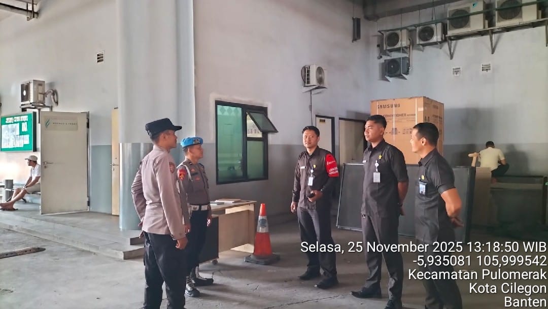 Cilegon - Personel Polsek Kskp Merak Polres Cilegon Polda Banten melaksanakan sambang dan patroli kawasan pelabuhan merak dalam rangka menjaga Harkamtibmas di Kawasan Pelabuhan Merak, Selasa (25/11/2025).