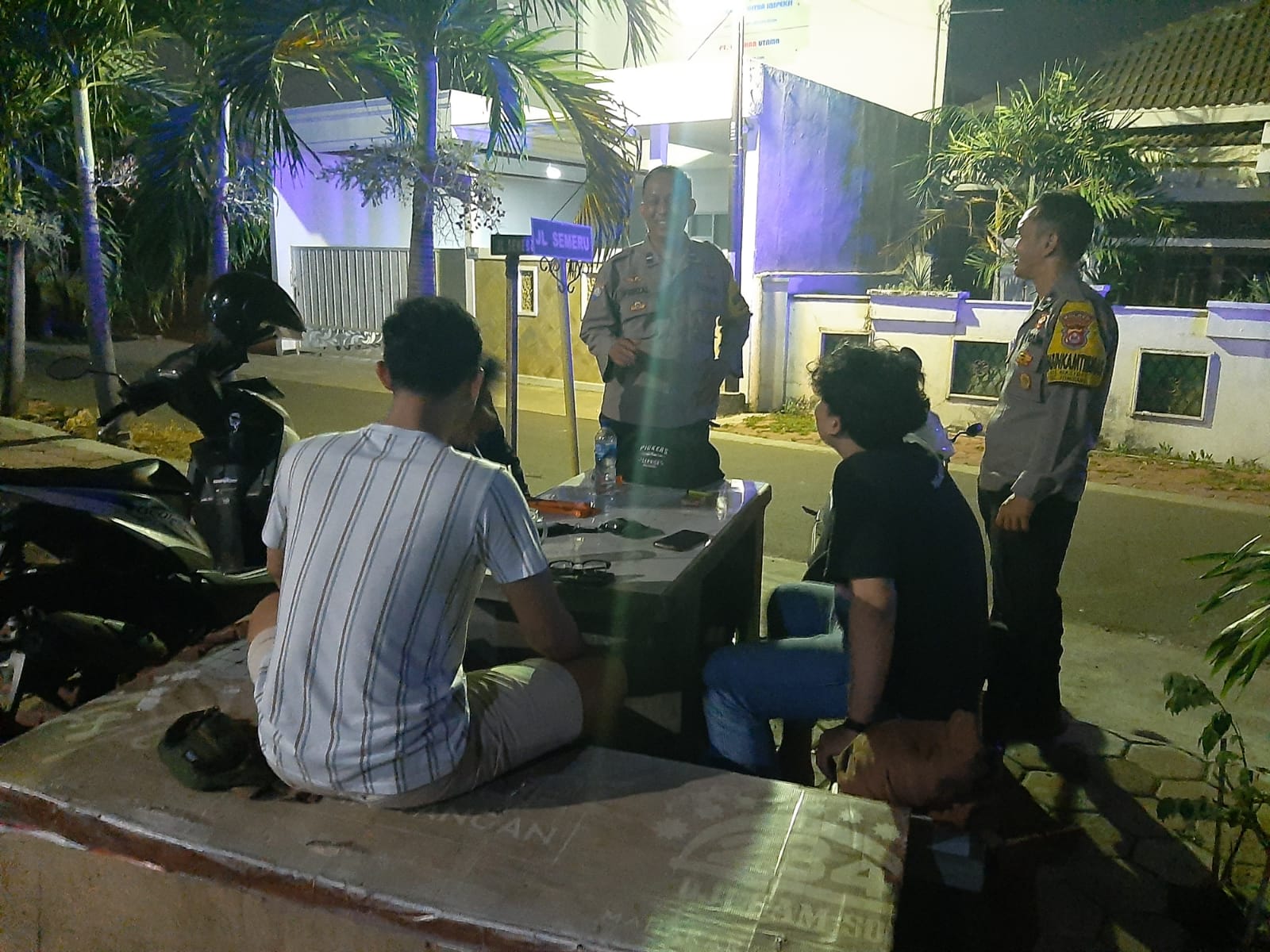 Anggota samapta Polsek Cilegon sambangi ronda malam sampaikan pesan kamtibmas jaga kondusifitas di lingkungan wilyah hukum nya