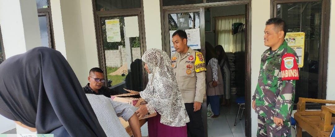Bhabinkamtibmas Polsek Anyar Polres Cilegon Polda Banten melaksanakan pengamanan Kegiatan Penyaluran bantuan Sembako dari Pemerintah tahun 2023 oleh Pos Indonesia Kec. Anyar, Kamis (27/11).