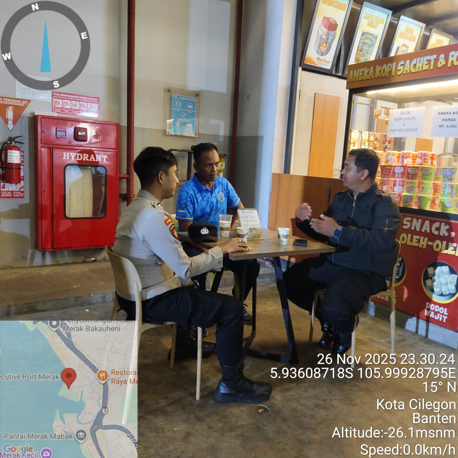 Cilegon - Personil Polsek Kskp Merak Polres Cilegon melaksanakan patroli di kawasan pelabuhan merak memberikan rasa aman dan damai, Kamis (27/11/2025)