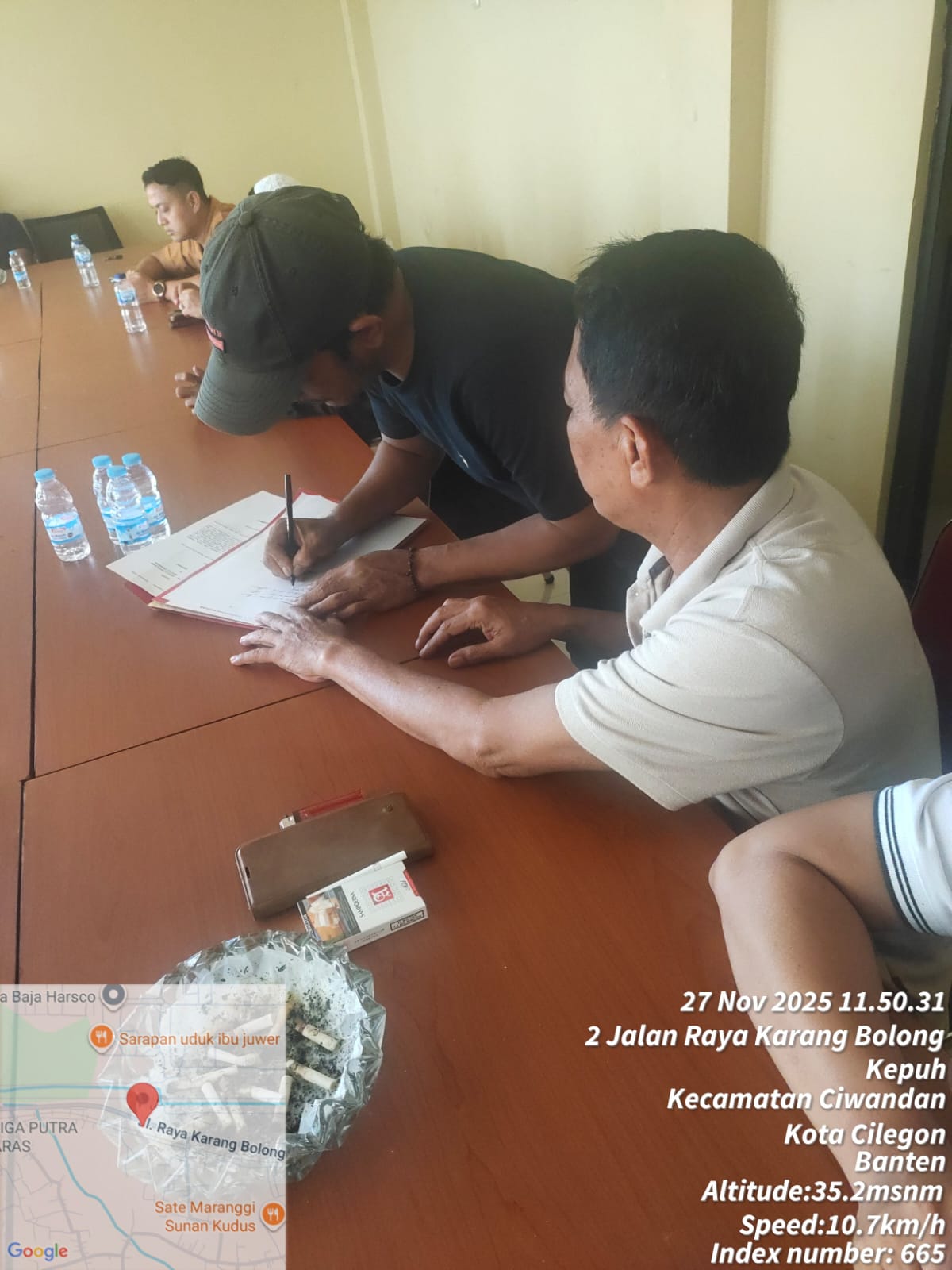 Dan untuk menguatkan kesepakatan tersebut Kedua belah pihak membuat surat kesepakatan bersama dihadapan Bhabinkamtibmas Kelurahan Gunung Sugih Polsek Ciwandan Polres Cilegon Polda Banten, terangnya