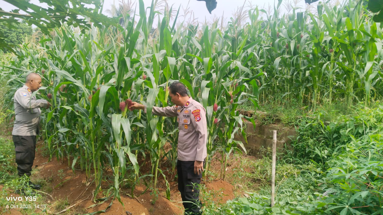 Penanaman Jagung serentak Kuartal IV Seluruh Indonesia di lahan milik kelompok tani Bpk. Maman Rt. 01/01 Kp. Macute Kel. Angsana Kec. Mancak-Serang daerah hukum Polres Cilegon.