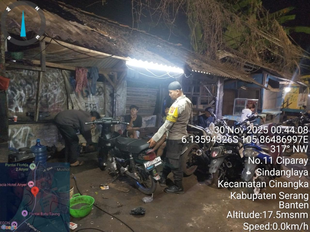 *Polres Cilegon* – Dalam Rangka Pencegahan Kejahatan Jalanan dan Memelihara situasi keamanan dan menjaga serta memberikan rasa aman dan nyaman di masyarakat,Salah satu upaya untuk mewujudkan hal tersebut sebagaimana yang dilakukan oleh Personil Polsek Cinangka Polres Cilegon Polda Banten melaksanakan giat patroli blue light malam hari hingga menjelang pagi, Minggu (30/11/2025).