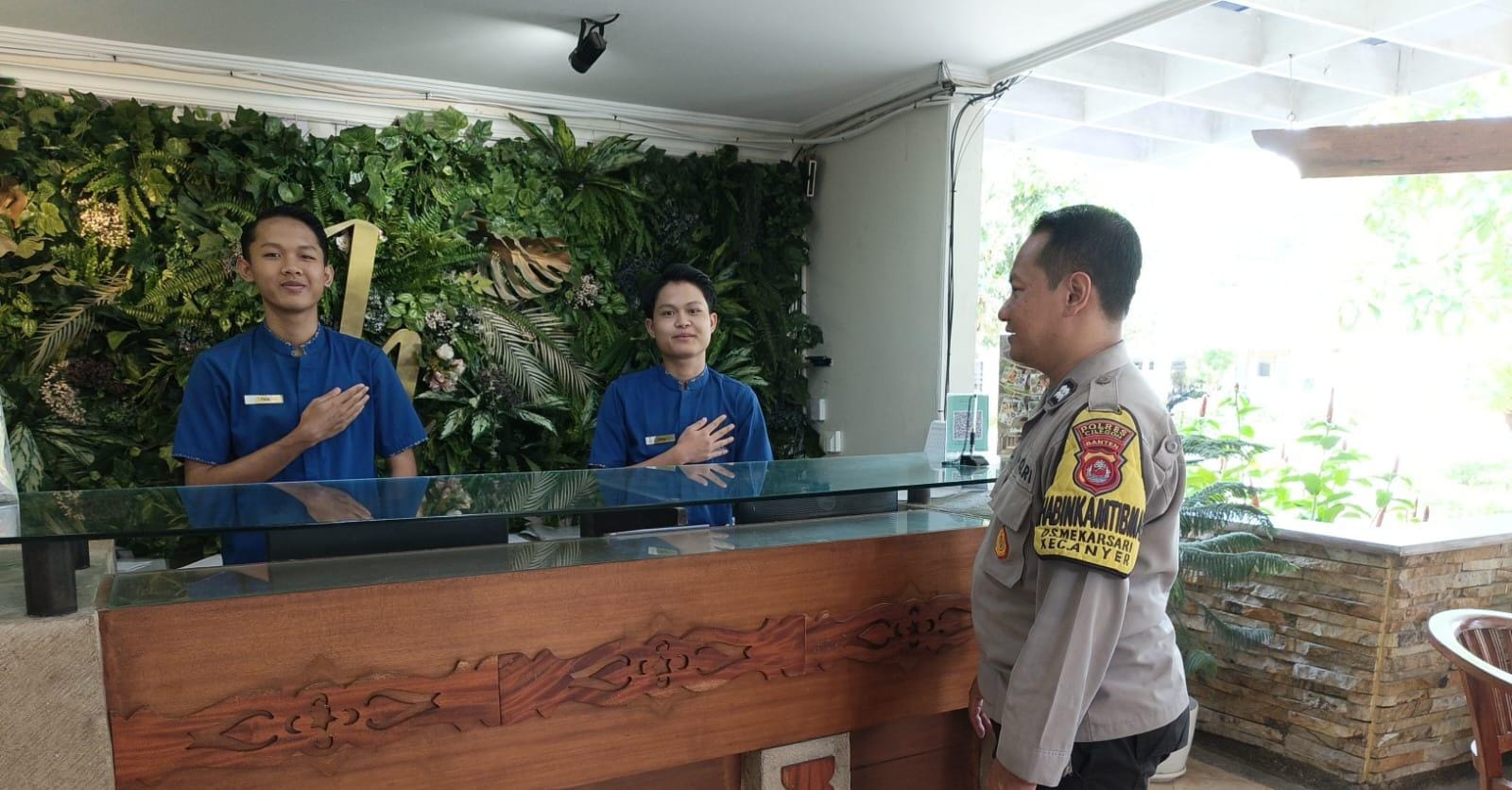 Patroli perhotelan Polsek Anyar Berikan Himbauan Kamtibmas
