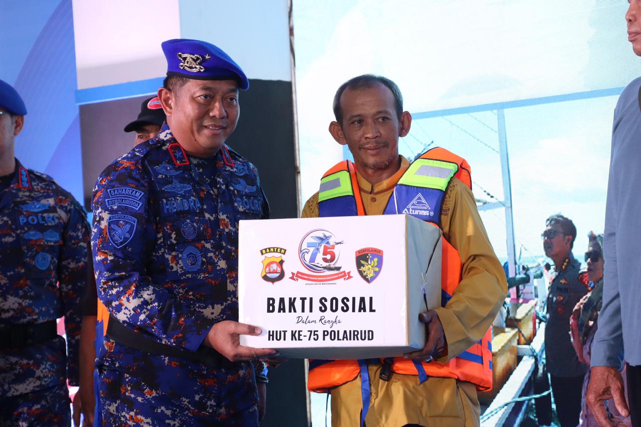 Dalam sambutannya, Dir Polairud Polda Banten Kombes Pol Yunus Hadith Pranoto, S.I.K., M.Si., menyampaikan rasa syukur atas perjalanan panjang dan dedikasi Polairud selama 75 tahun. Ia menegaskan bahwa jajaran Polairud Banten telah melaksanakan berbagai rangkaian kegiatan sosial, mulai dari bersih-bersih pantai, bakti religi, anjangsana kepada purnawirawan, tabur bunga, hingga penyaluran sembako kepada masyarakat pesisir Merak dan Anyer. Seluruh kegiatan tersebut menjadi wujud nyata Polairud dalam mendekatkan diri kepada masyarakat.