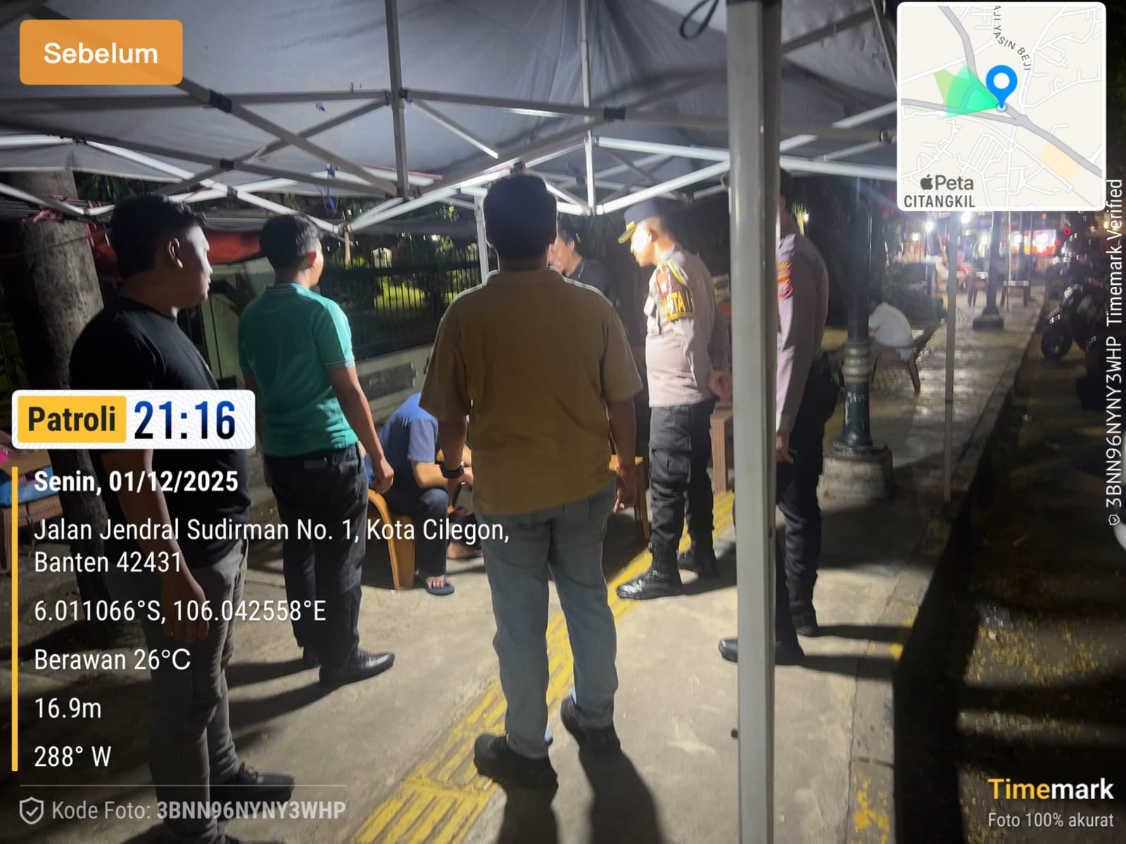 Anggota Polres Cilegon melaksanakan kegiatan patroli malam sebagai upaya menjaga keamanan dan ketertiban di wilayah hukumnya. Patroli dilakukan dengan menyisir sejumlah lokasi yang dianggap rawan terjadinya gangguan kamtibmas, termasuk area pemukiman, pusat keramaian, dan jalur utama.