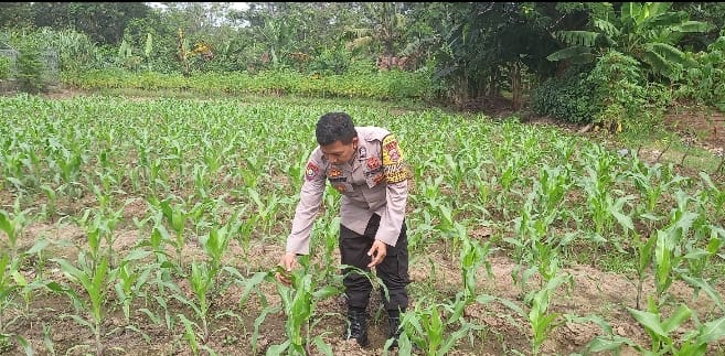 Setelah pengecekan, Bhabinkamtibmas memberikan saran mengenai pengendalian hama dan pemupukan yang tepat, serta memastikan tidak ada gangguan yang mengganggu pertumbuhan tanaman jagung di kawasan tersebut.