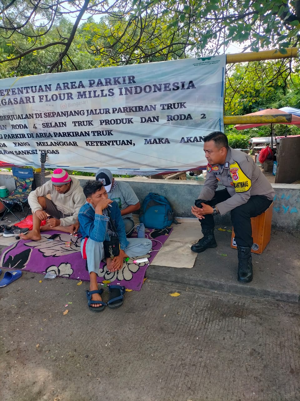 Jalin Silaturahmi, Bhabinkamtibmas Pelabuhan Polsek KSKP Banten berbincang ke Buruh Pelabuhan
