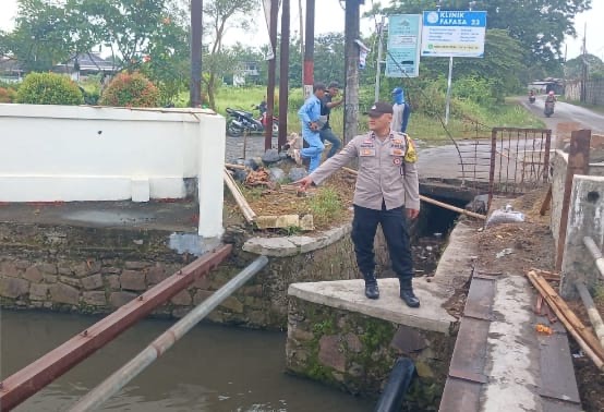 Bhabinkamtibmas Polsek Purwakarta Aiptu Daryo.E Pantau Debit Air Sungai di Kelurahan Kebondalem, Cegah Banjir