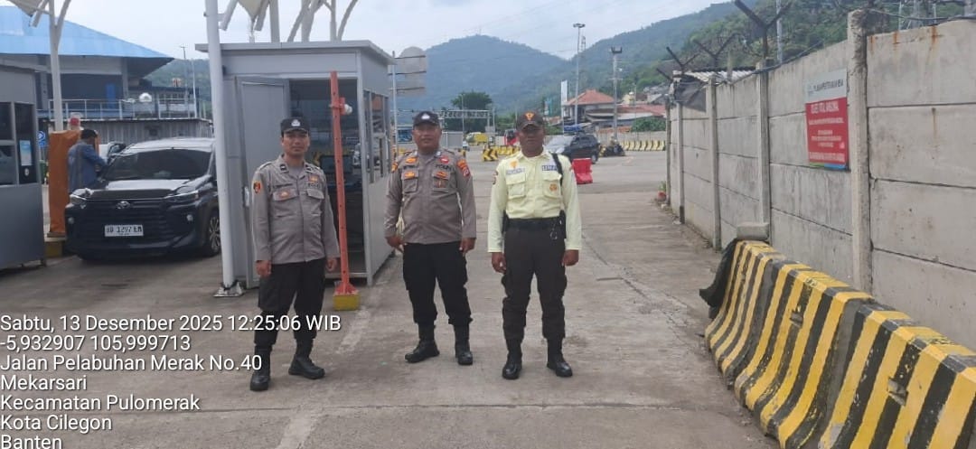 Cilegon - Personel Polsek Kskp Merak Polres Cilegon Polda Banten melaksanakan sambang dan patroli kawasan pelabuhan merak dalam rangka menjaga Harkamtibmas di Kawasan Pelabuhan Merak, Sabtu (13/12/2025).