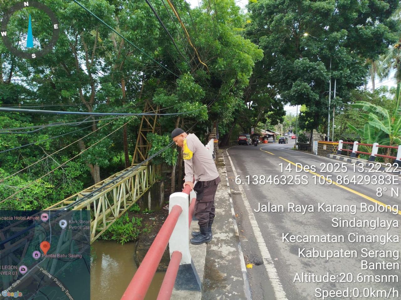 -POLRES CILEGON–Polda Banten. Babinkamtibmas Polsek Cinangka, meningkatkan pemantauan terhadap aliran sungai dan debit air di wilayahnya, terutama di sekitar Sungai Cidanau, Kecamatan Cinangka, Kab Serang. Hal ini dilakukan sebagai langkah antisipasi terhadap potensi banjir, terutama di musim penghujan. Senin.(15-12-2025).
