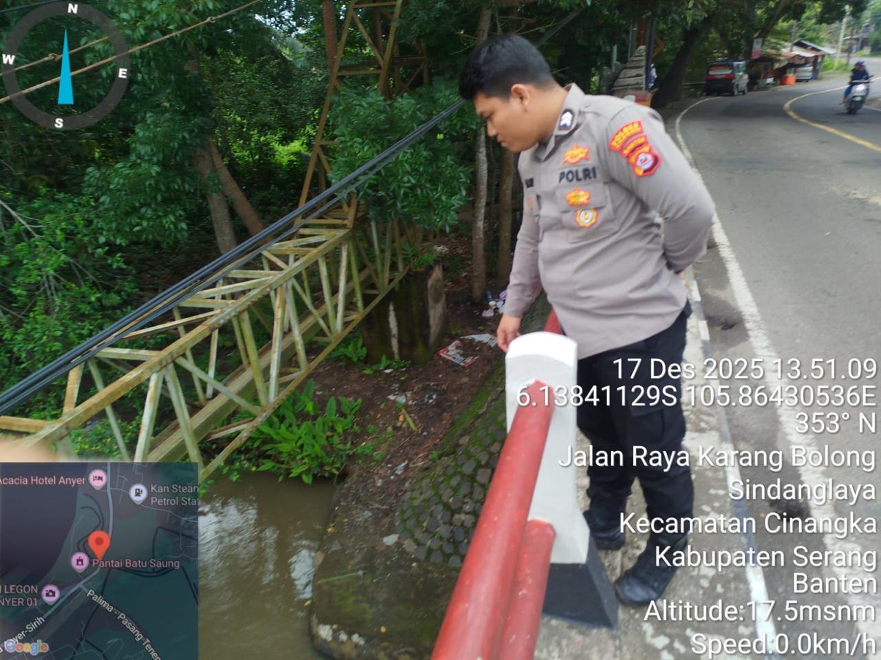-POLRES CILEGON–Polda Banten. Babinkamtibmas Polsek Cinangka, meningkatkan pemantauan terhadap aliran sungai dan debit air di wilayahnya, terutama di sekitar Sungai Cidanau, Kecamatan Cinangka, Kab Serang. Hal ini dilakukan sebagai langkah antisipasi terhadap potensi banjir, terutama di musim penghujan. Rabu.(17-12-2025).