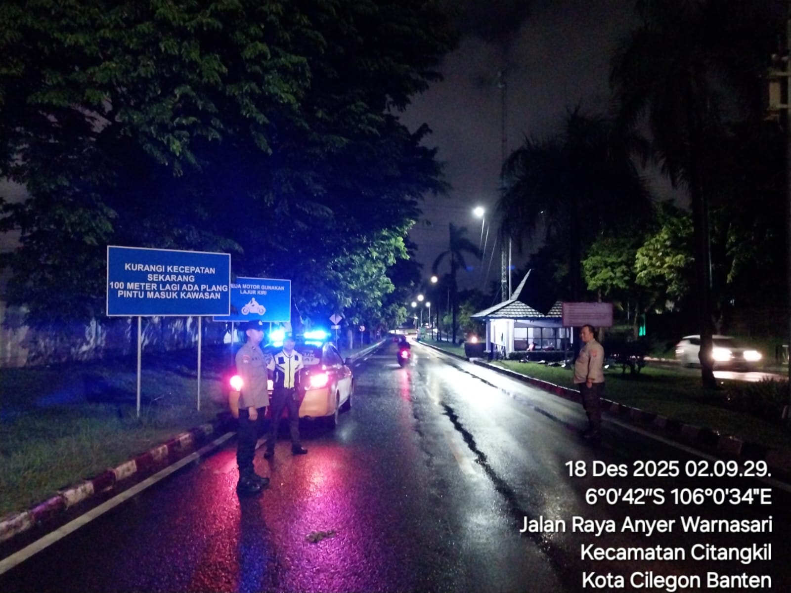 Cilegon - Demi Menjaga keamanan Daerah Hukum Polsek Ciwandan agar tetap kondusif, Personil Polsek Ciwandan Polres Cilegon Polda Banten Melakukan kegiatan sambang kamtibmas Dan Patroli Bersama Security, Kamis (18/12/2025).