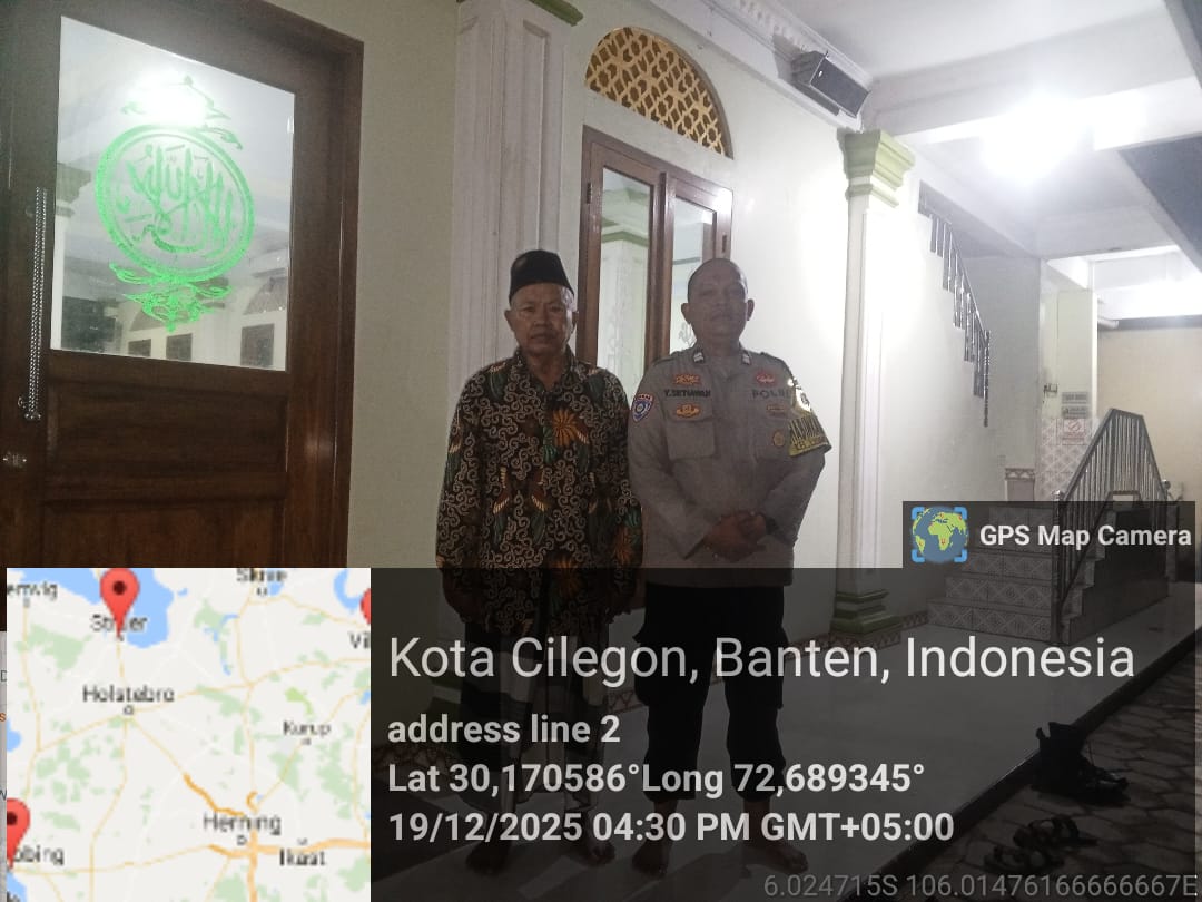 Cilegon - Dalam Rangka Memakmurkan Masjid Dan Sambang,Bhabinkamtibmas Polsek Ciwandan Polres Cilegon Polda Banten Sholat Berjama’ah dan Bersilaturahmi kepada para tokoh Agama sebagai upaya meningkatkan Ukhuwah Islamiyah dalam menjalin silaturahmi dan membangun komunikasi yang baik, Kamis (18/12/2025).