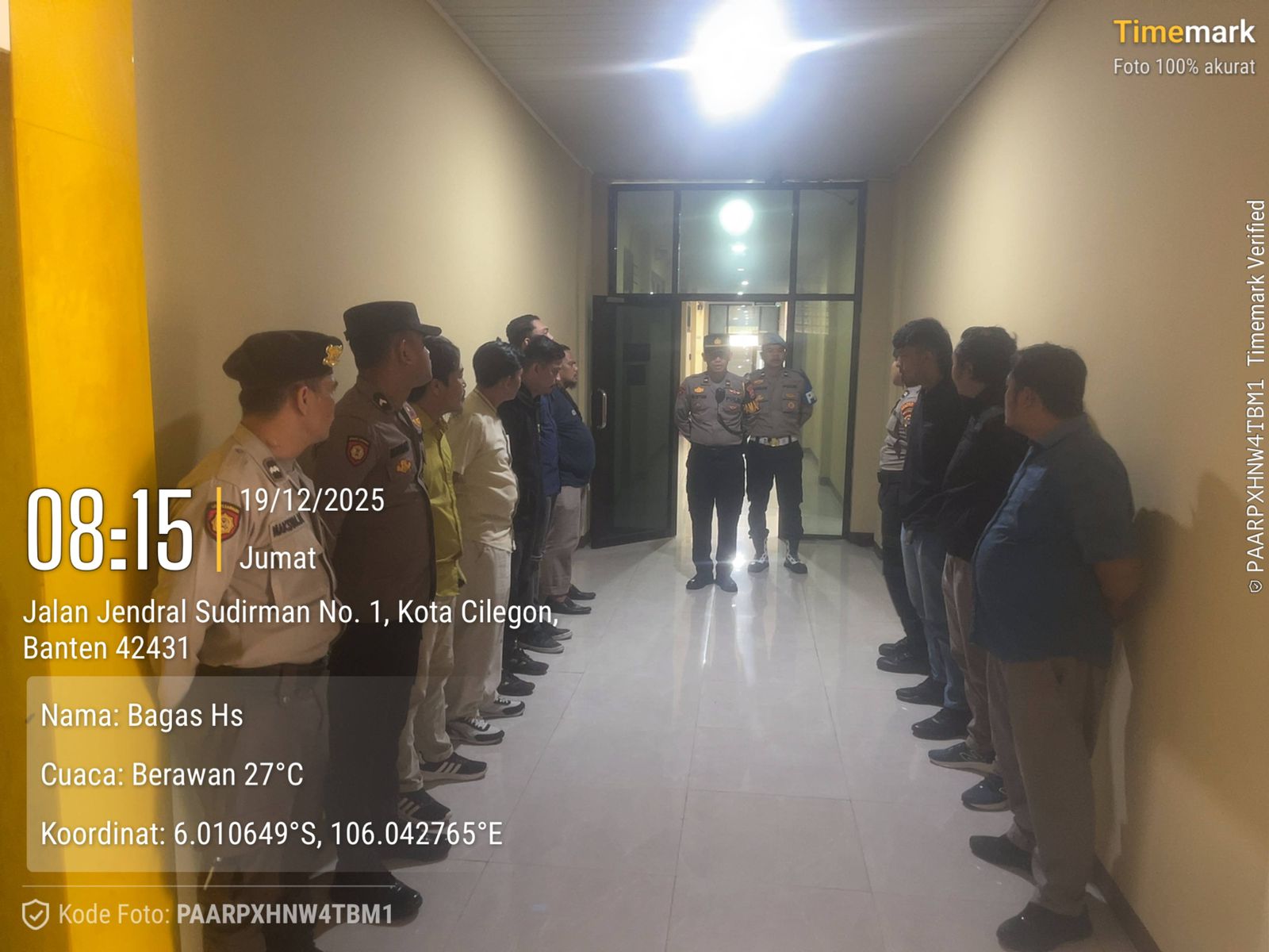 Kapolres Cilegon Polda Banten AKBP  Dr.Martua Raja Taripar Laut Silitonga melalui Kasatreskrim Polres Cilegon AKP Yoga Tama mengatakan, “kegiatan personel satreskrim polres cilegon melakukan piket di penjagaan pintu masuk Mako Polres Cilegon mengantisipasi adanya kejahatan yang menggangu kenyamanan dan keamanan mako Polres Cilegon dalam melakukan pelayanan kepada masyarakat kota Cilegon".