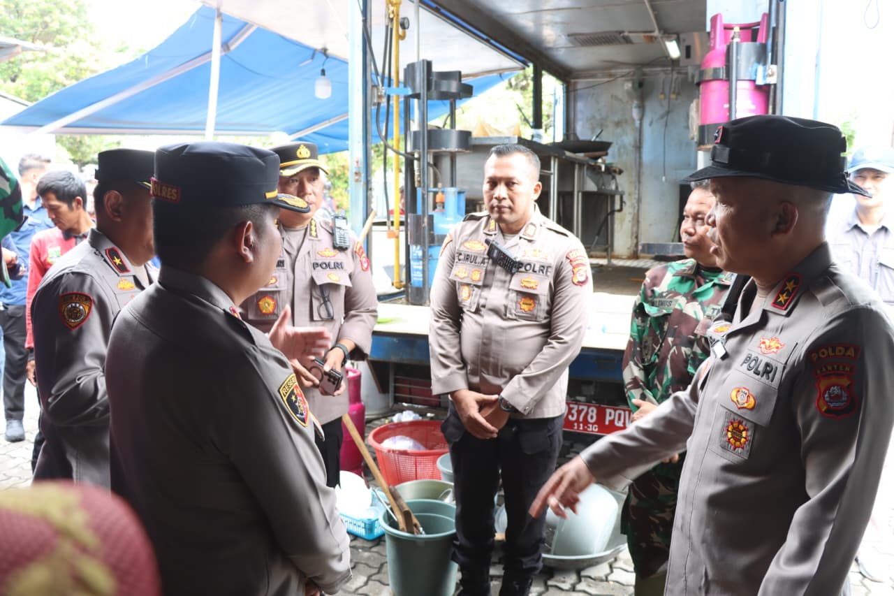 Kunjungan diawali sekitar pukul 10.35 WIB di dapur umum siaga bencana yang berlokasi di Kantor PDAM Kota Cilegon, Kecamatan Cibeber. Kapolda Banten disambut oleh Wakapolda Banten Brigjen Pol. Dr. Hendra Wirawan, S.H., S.I.K., M.H., Karoops Polda Banten Kombes Pol. Yofie Girianto Putro, S.I.K., M.H., Kapolres Cilegon AKBP Dr. Martua Raja Taripar Laut Silitonga, S.H., S.I.K., M.Si. selaku penanggung jawab kegiatan, serta Dandim 0623/Cilegon Letkol Inf Imam Buchori, S.H., M.I.P.