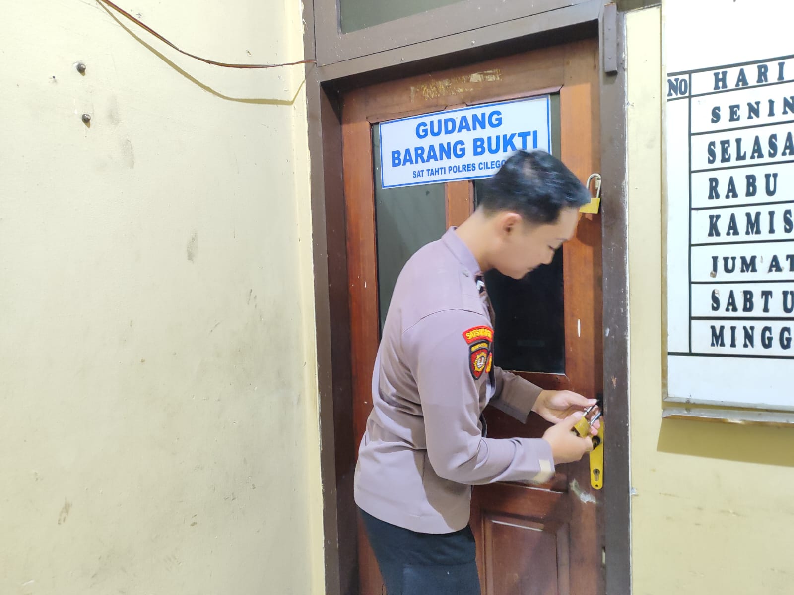 Kegiatan kontrol barang bukti di gudang sattahti ini adalah salah satu bentuk tugas dan tanggung jawab setiap personil anggota sattahti yang melaksanakan tugas pada hari itu.