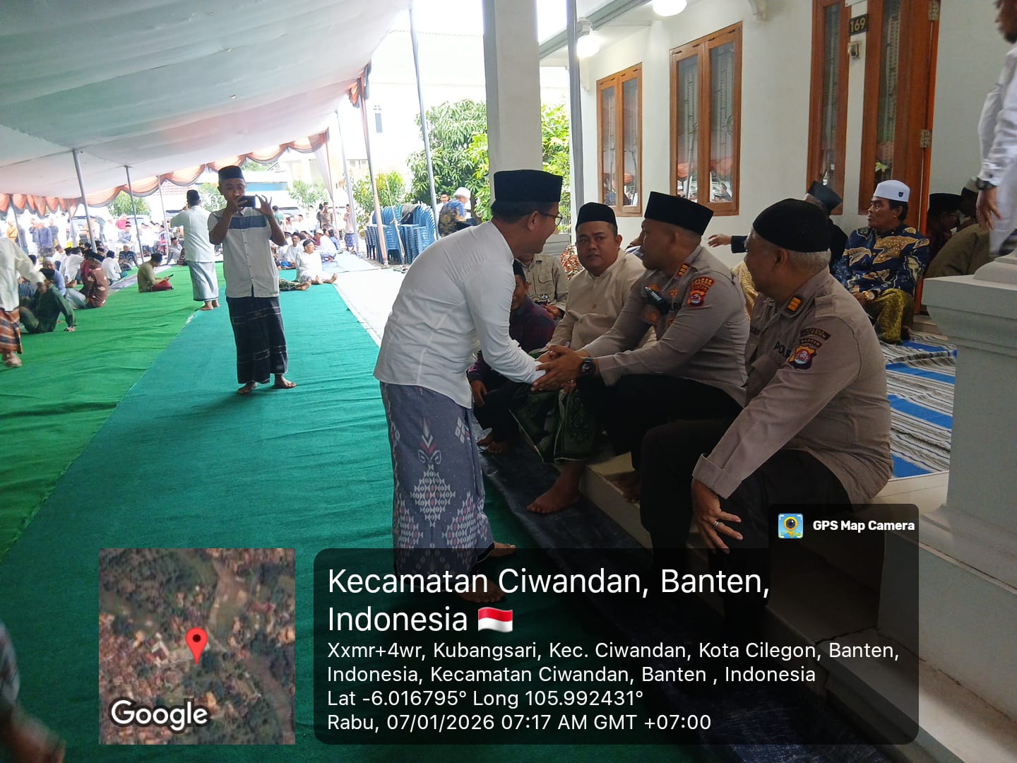 Kapolres Cilegon Polda Banten Dr. Martua Raja Taripar Laut Silitonga Melalui Kapolsek Ciwandan Polres Cilegon Polda Banten Diwakili Waka Polsek Ciwandan, AKP. U.M Maruf, dan Bhabinkamtibmas Aipda Asep Karyudin, menghadiri acara haul ibu Hj. Sofiyah Binti H. Abdurrahman dan melakukan silaturahmi dengan warga. Dalam kesempatan tersebut, mereka menyampaikan pesan kamtibmas agar warga dapat berperan aktif dalam menjaga keamanan dan ketertiban di lingkungan.