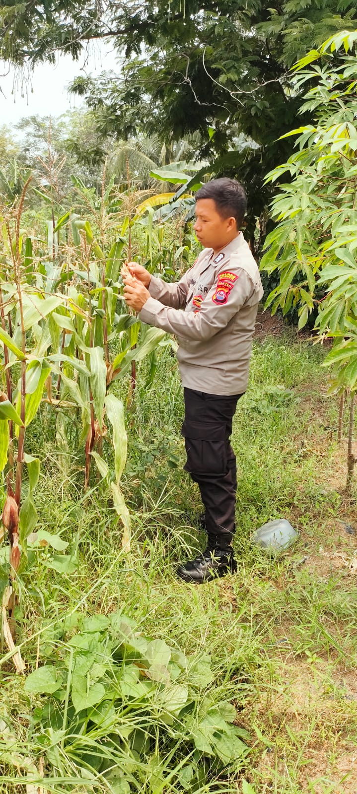 -Polres Cilegon–Polda Banten. Polres Cilegon Polda Banten – Bripka Agustoni, Personil Bhabinkamtibmas Kelurahan Kotabumi Polsek Purwakarta, melakukan pengecekan dan pendampingan langsung terhadap tanaman jagung milik warga di wilayahnya. Kegiatan yang dilakukan pada.Jumat.(9-01-2026) bertujuan untuk mendukung upaya ketahanan pangan dan mempererat tali silaturahmi antara Polri dengan masyarakat.