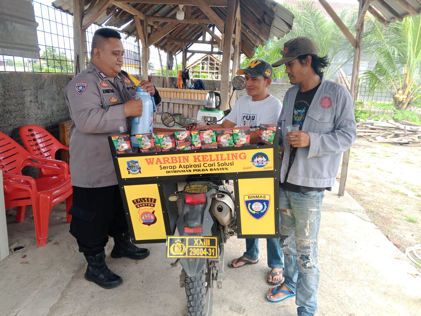 Kapolres Cilegon Polda Banten AKBP Dr Martua Raja Taripar Laut Silitonga melalui Kapolsek Bojonegara Polres Cilegon Polda Banten IPTU Muhammad Lazim Satria Wibowo Mengatakan Warung Bhabinkamtibmas adalah tempat untuk warga menyampaikan saran dan masukan kepada polisi Bhabinkamtibmas di desa. Suasana yang dibuat adalah santai dan bersahaja sebagaimana kumpul kumpul di warung"Fungsi dari kegiatan ini adalah untuk menjaring informasi yang berkembang di masyarakat dan menjadi garda terdepan dalam penyelesaian masalah yang ada di lingkungan warga terpencil agar tidak berkembang menjadi masalah yang lebih besar dan dapat mengganggu harkamtibmas.