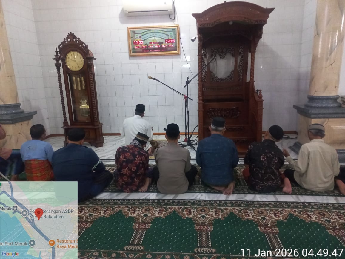 Cilegon – Personil Kskp Merak Polres Cilegon Polda Banten menggelar kegiatan Pembinaan Rohani dengan shalat subuh keliling di Masjid Yang ada Di Daerah hukum Polsek Kp Merak Polres Cilegon Polda Banten, Minggu (11/01/2026).
