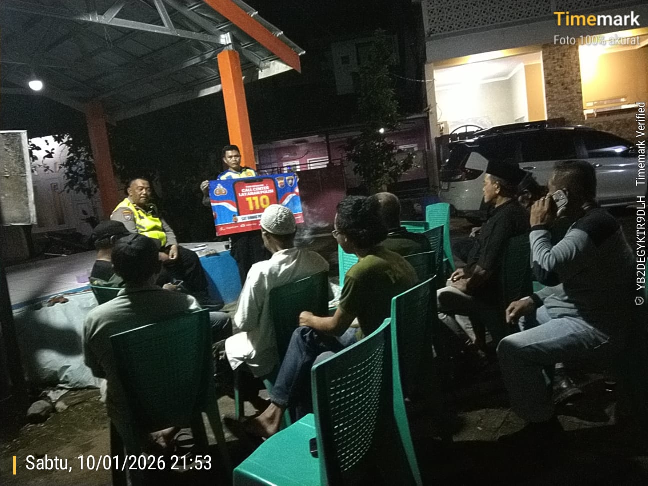 Cilegon - Kasat Binmas Polsek Ciwandan Polres Cilegon Polda Banten IPTU Muhyidin bersama Personil Bhabinkamtibmas Polsek Ciwandan Polres Cilegon Polda Banten BRIPKA Heri Siswantoko melakukan kontrol Pos Ronda dan Berikan himbauan kepada pihak terkait dan warga, agar kegiatan Siskamling ditingkatkan lagi, Minggu (11/01/2026).
